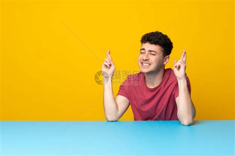 长着多彩的墙壁和桌布手指交叉并祝愿高清图片下载-正版图片505884…