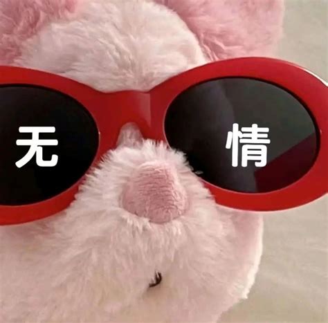 戴着红色墨镜的毛绒玩偶,镜片上写着“无情”,超有范