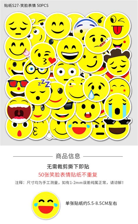 50张防水不重复可爱笑脸表情卡