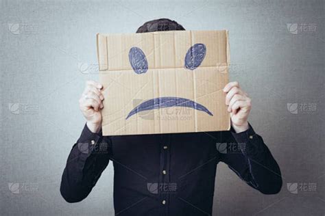 拿着纸板的人,脸上带着忧郁的笑容