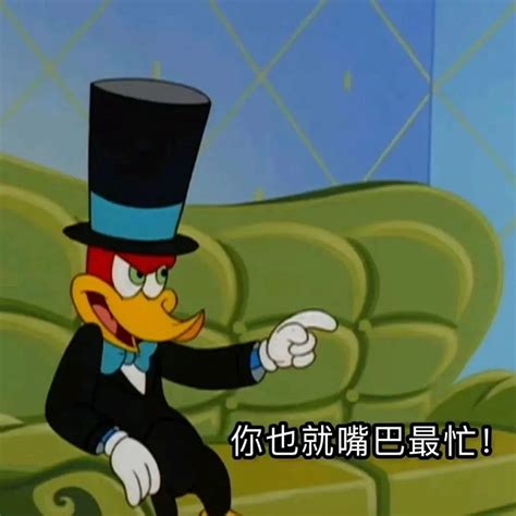 《戴着礼帽的卡通鸭子坐在沙发上…