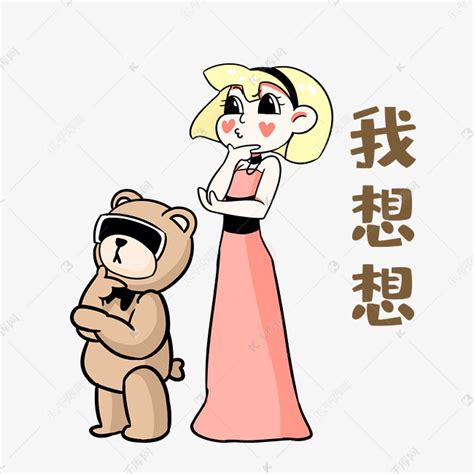 女孩我想想表情包素材图片免费下载-千库网