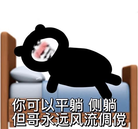 可爱小熊躺床上,配文“你可以平躺侧躺但哥永远风流倜傥”