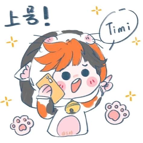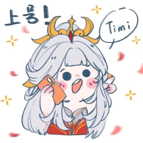 可爱卡通人物手持手机,配文“上号!Timi”…