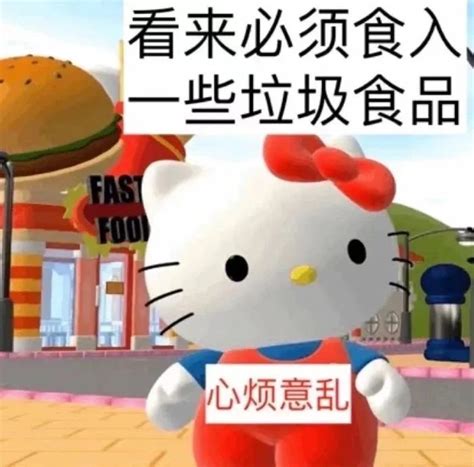 Hello Kitty表情无奈,配文“看来必须食入一些垃圾食品” 实
