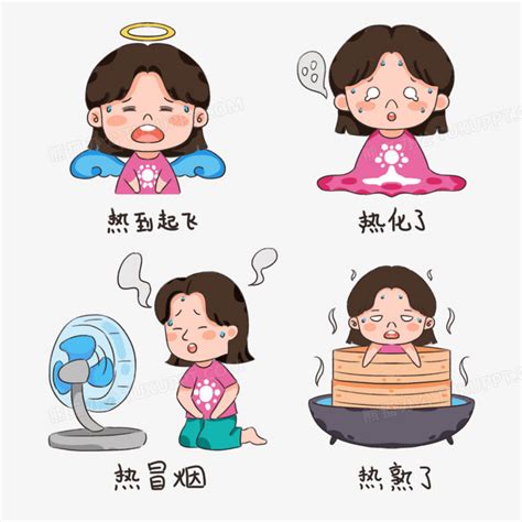 一组卡通夏季中暑表现表情包套图一PNG图片素材下载…