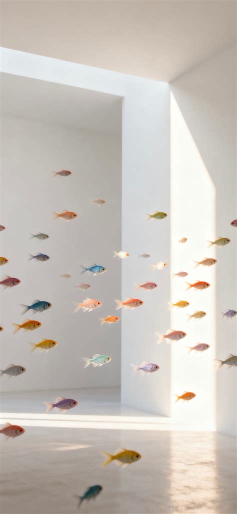 纯白空间沐暖阳,多彩鱼儿凌