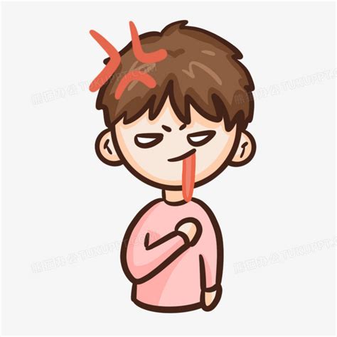 卡通手绘男孩红色吐血表情包元素PNG图片素材下