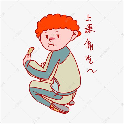 开学季男孩上课偷吃表情包插画素材图片免费下载-千