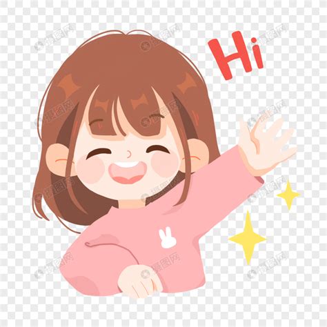 女孩表情包招手元素素材下载-正版素材401420326-摄图网
