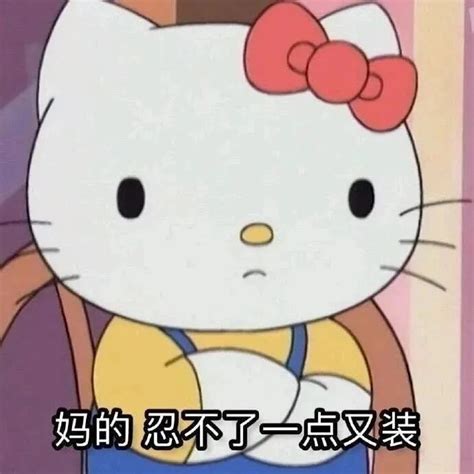 可爱的Hello Kitty双手抱胸配文“妈的 忍不了一点