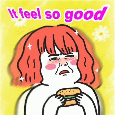 it feel so good 红头发女孩手拿汉堡,表情