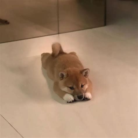小狗狗趴着表情包 可爱柴犬趴地卖萌,委屈巴