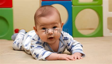 可爱的男婴用俏皮的表情享受趴着的时光高清摄影大图-千库网