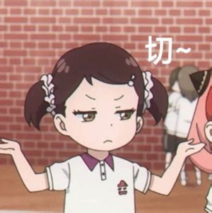动漫切表情包 双马尾女孩双手摊开,表情不屑,配文“切~”尽