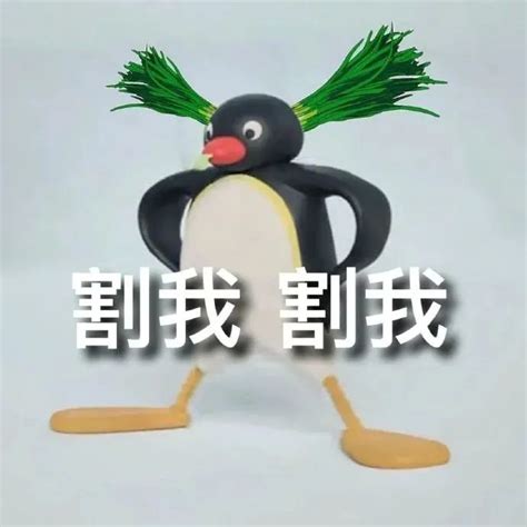 可爱企鹅双手叉腰,头顶绿草配文“割我割我”超搞笑 表情包|表