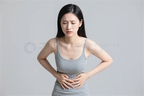 病人AI数字艺术-病人简约风格成年女性痛苦表情按摩腹部灰色吊带背心人