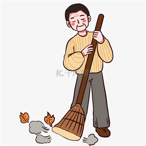 秋季养生锻炼扫地男子打扫卫生清洁表情包
