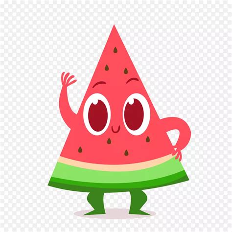 可爱卡通形象站在西瓜切片