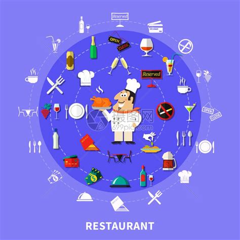 餐厅符号圆形构图餐厅圆圈构图与卡通