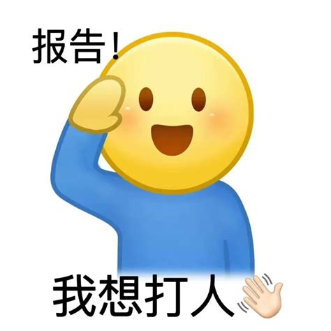 可爱小黄脸敬礼报告,配文“我想打人”,俏皮