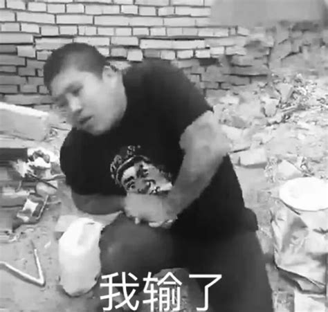 男子蹲在废墟中,表情痛苦,配文“我输了”的搞笑表