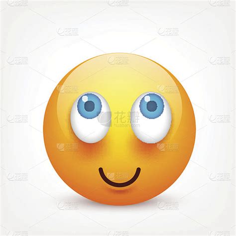 蓝眼睛的笑脸,表情符号。黄脸带着情绪。面部表