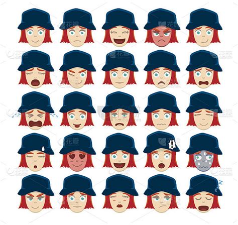 潮人姜表情矢量插图