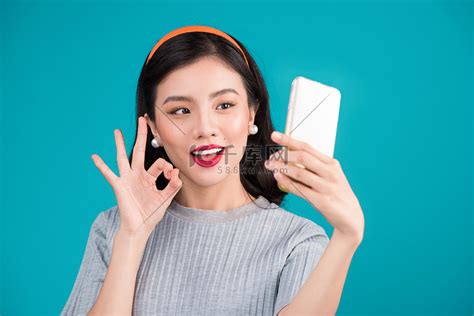 微笑可爱的贴图亚洲女孩自拍照片的特写高清摄影大图-千库网