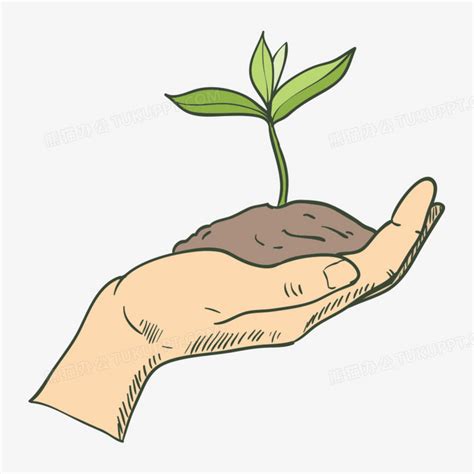 手捧树苗树芽素材植树节PNG图片素材下载_图
