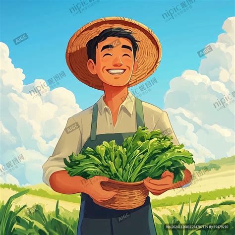 AI创作图农人插画 拿蔬菜的农民 开心小农