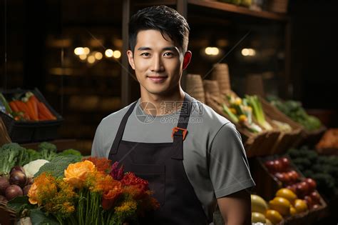展示蔬菜的亚洲店员高清图片下载-正版图片600560073-摄图网