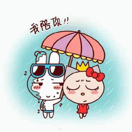 我陪你!! 可爱卡通角色,兔子戴墨镜撑伞,配文“我