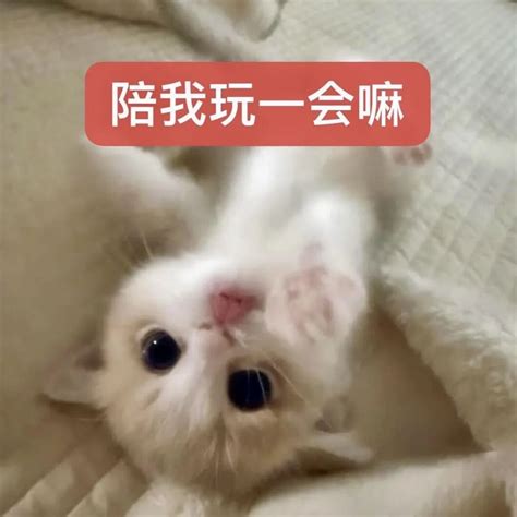 小白猫仰躺撒娇 软萌呼唤:陪我玩一会嘛 表情